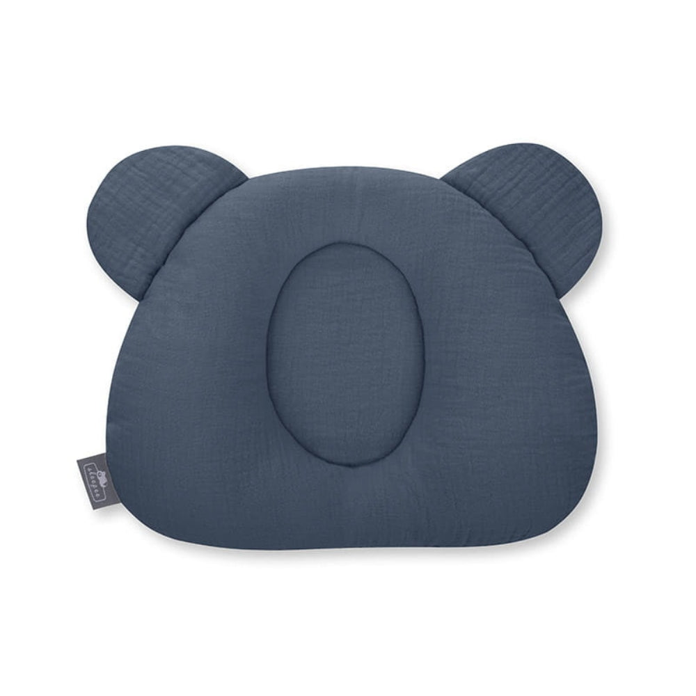 Detský vankúš Sleepee je vyrobený z mäkkého bavlneného mušelínu a má tvar pripomínajúci hlavu medvedíka.
