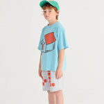 Detské tričko Bobo Choses je výrazný model, ktorý okamžite upúta pozornosť svojou farebnou, umeleckou potlačou a pruhovaným vzorom.