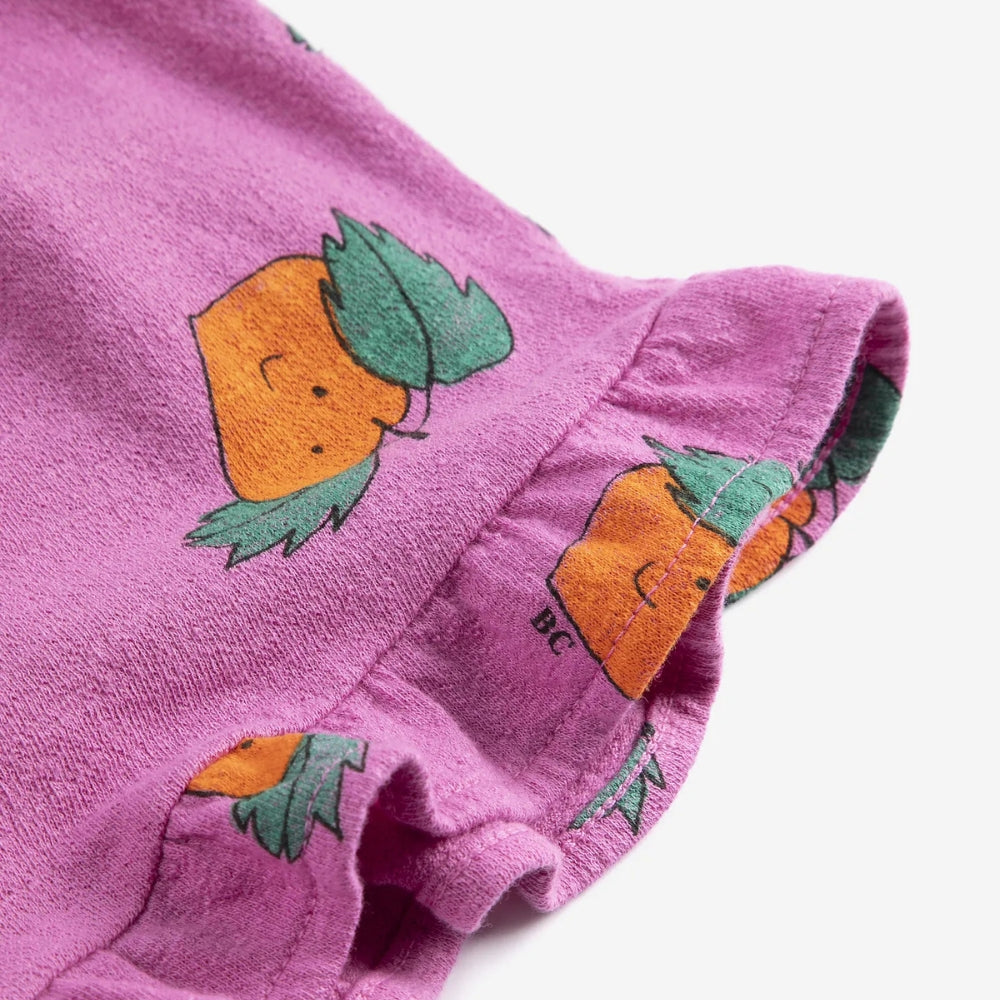Voľný, klasický strih zaručuje pohodlie počas každodenných aktivít, zatiaľ čo jemná ružová farba a detská mandarínková potlač dodávajú ľahkosť a šarm.