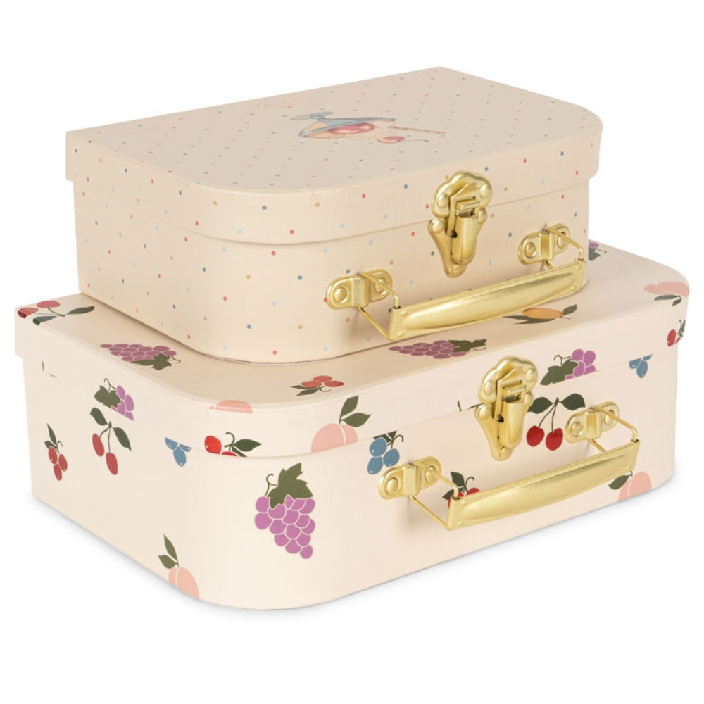 Táto očarujúca súprava dvoch kartónových kufríkov vám umožní jednoducho usporiadať hračky, drobnosti a suveníry a zároveň poskytne krásny dekoratívny prvok v detskej izbe.