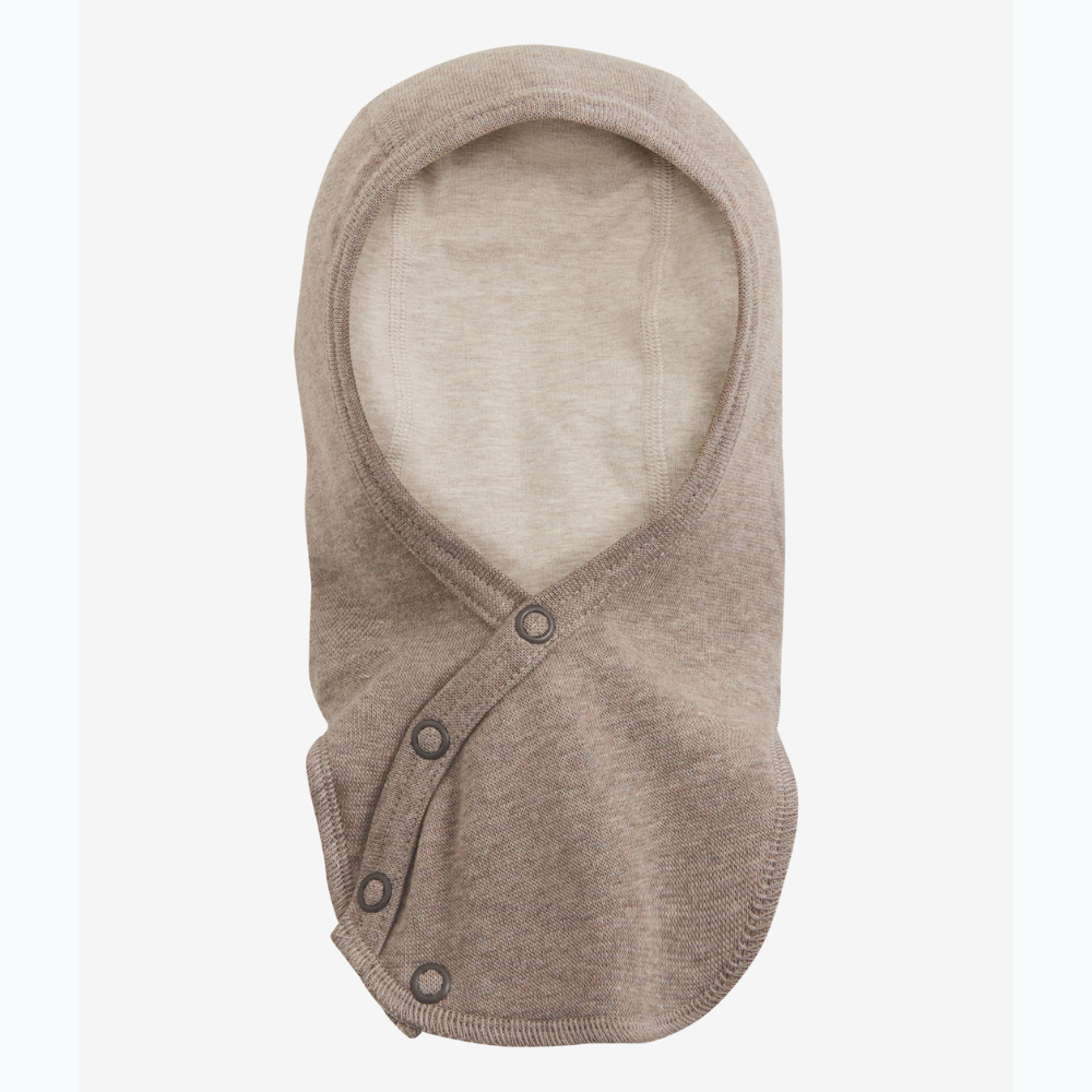 Táto detská kukla z mäkkého rebrovaného úpletu príjemne obopne hlavu a krk vášho dieťatka, zatiaľ čo predné zapínanie na patentky uľahčuje jej rýchle nasadenie bez ťahania.