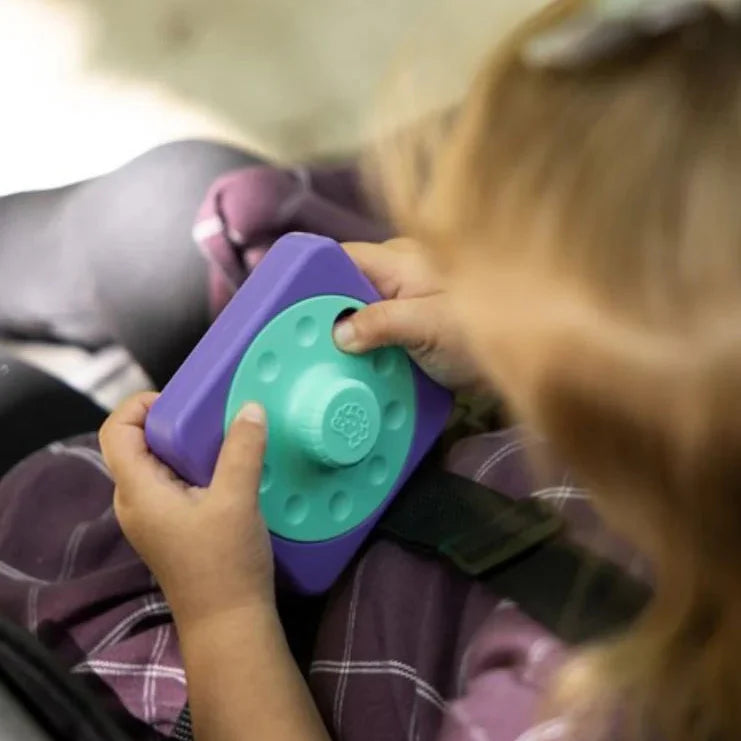 Zmyslový štvorcový disk PlayTab Number Disk od spoločnosti Fat Brain Toys je pútavá hračka pre batoľatá, ktoré sa rady točia, skúmajú a počúvajú zvuky klikania.