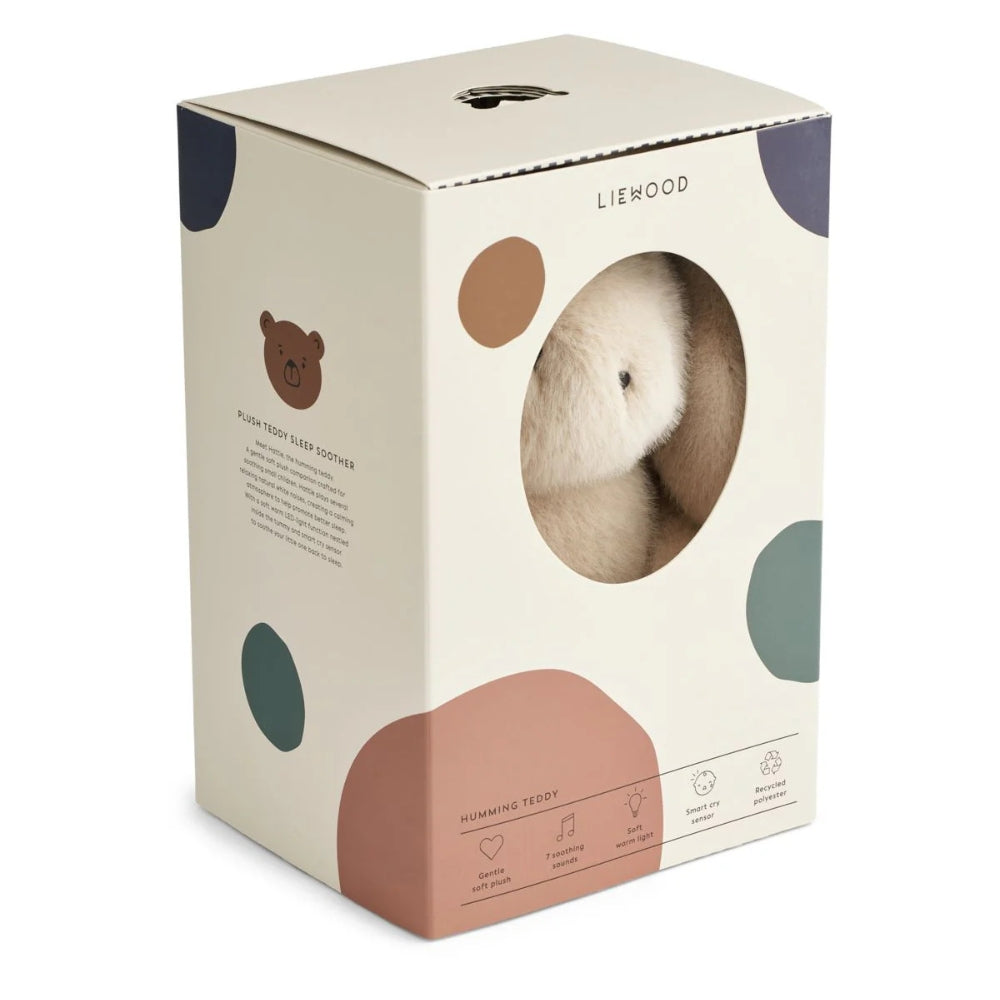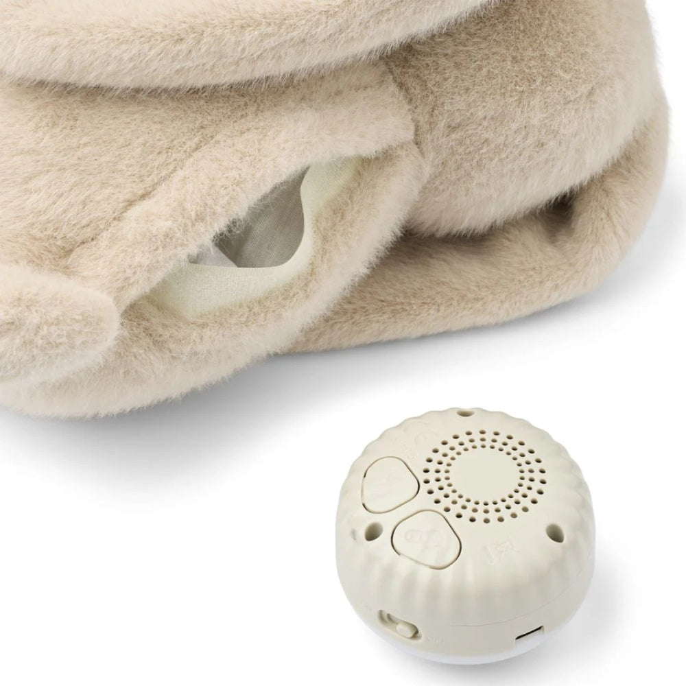 Húkajúci zajačik Liewood prehráva osem upokojujúcich zvukov, napríklad biely a ružový šum, spev vtákov alebo zvuk vĺn, takže sa dá ľahko prispôsobiť potrebám dieťaťa.