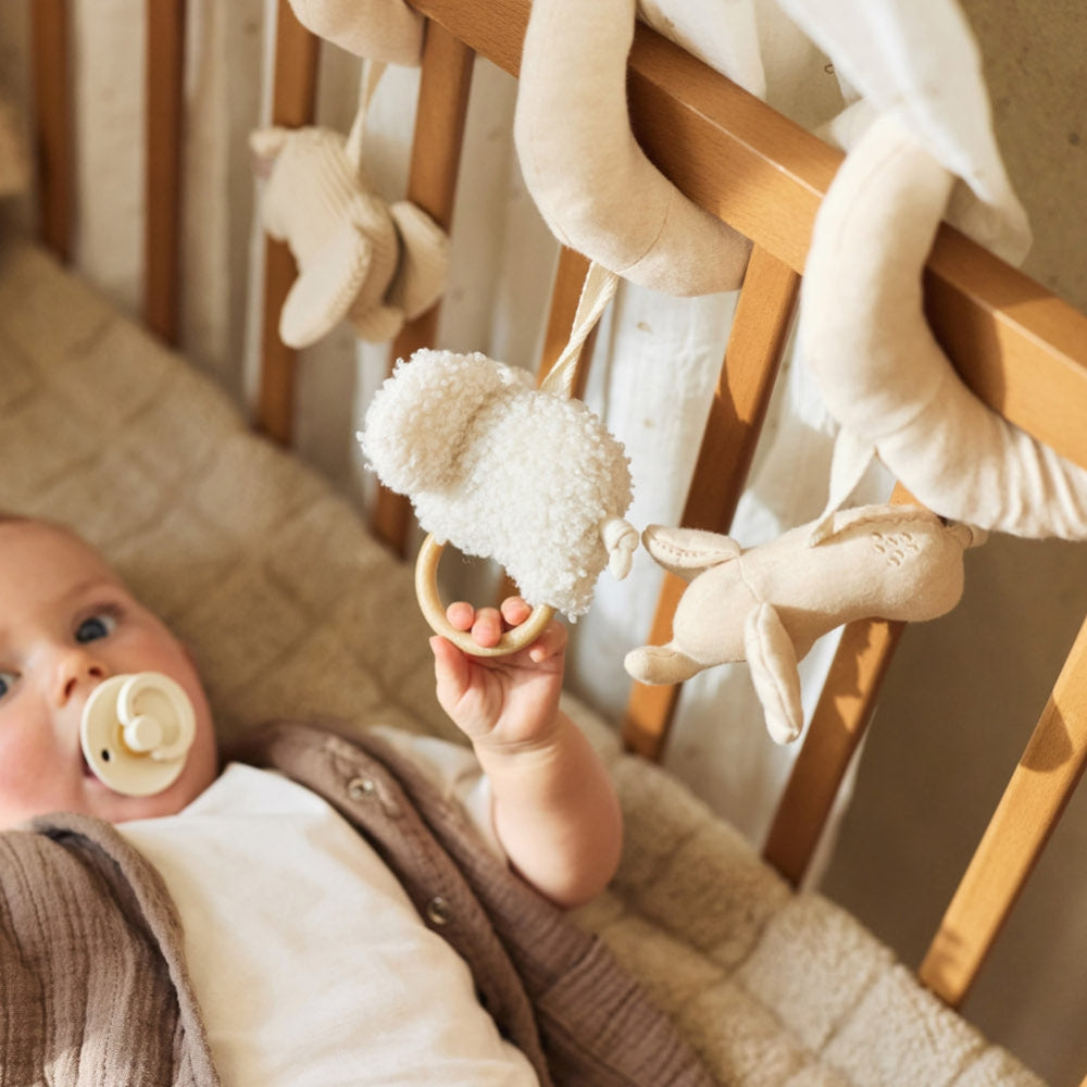 Značka Jollein vytvorila výrobok, ktorý spája funkciu senzorickej hračky s praktickým doplnkom do kočíka alebo postieľky.