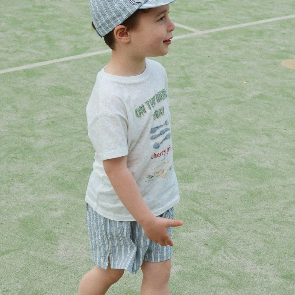 Model Elliot od Konges Slojd je vyrobený z ľahkej, priedušnej organickej bavlny s jemnou štruktúrou seersuckeru, takže látka zostáva priedušná aj počas horúcich dní.