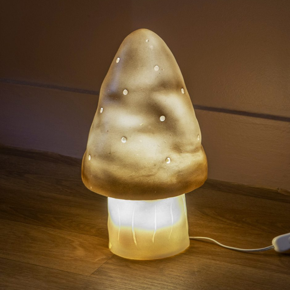 Nočná lampa v tvare hríbu od spoločnosti Minikane je očarujúcim akcentom, ktorý zútulní detský kútik.