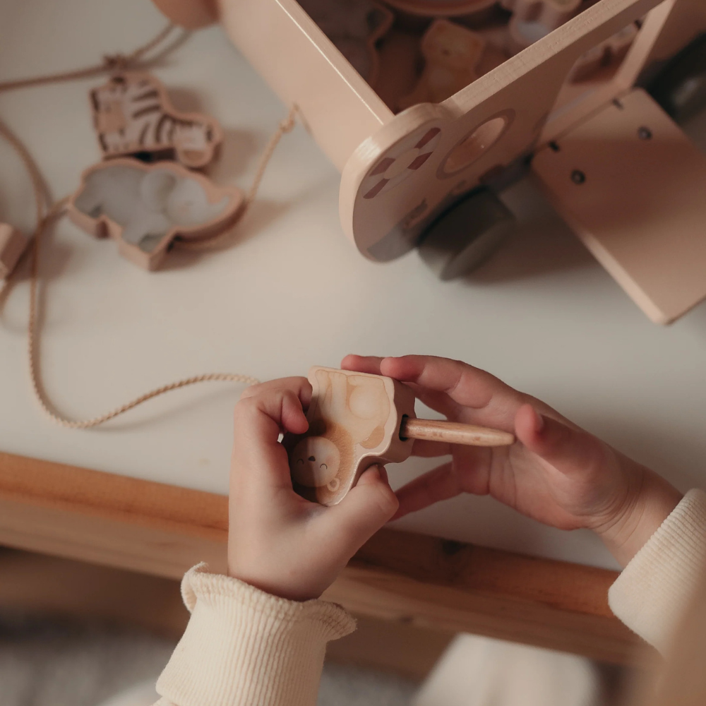Je to ideálna súprava na učenie sa prácou - batoľa triedi, usporadúva, navlieka a váľa a drevená loďka na kolieskach sa stane základom pre nekonečné scény a cesty.