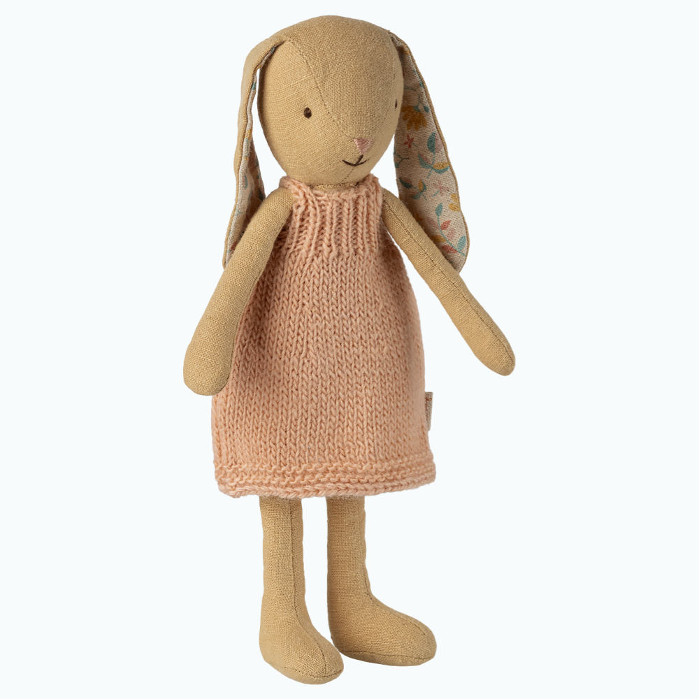 Maileg - klasický, mäkký a rozkošný zajačik v šatách, ktorý okamžite vyzýva na maznanie a hru.