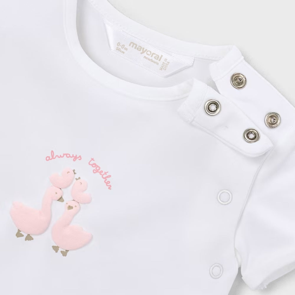 Vďaka roztomilému motívu malej húsky vyzerá novorodenecká súprava mimoriadne mäkko a detsky.