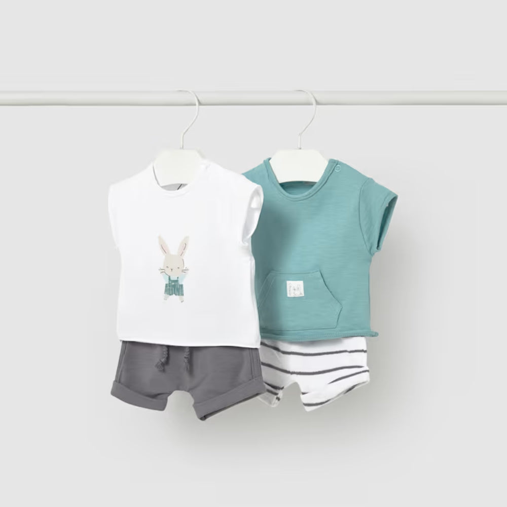 Súprava Mayoral obsahuje dva ľahké topy a dva páry krátkych šortiek, takže je ľahké kombinovať jednotlivé kúsky podľa počasia.