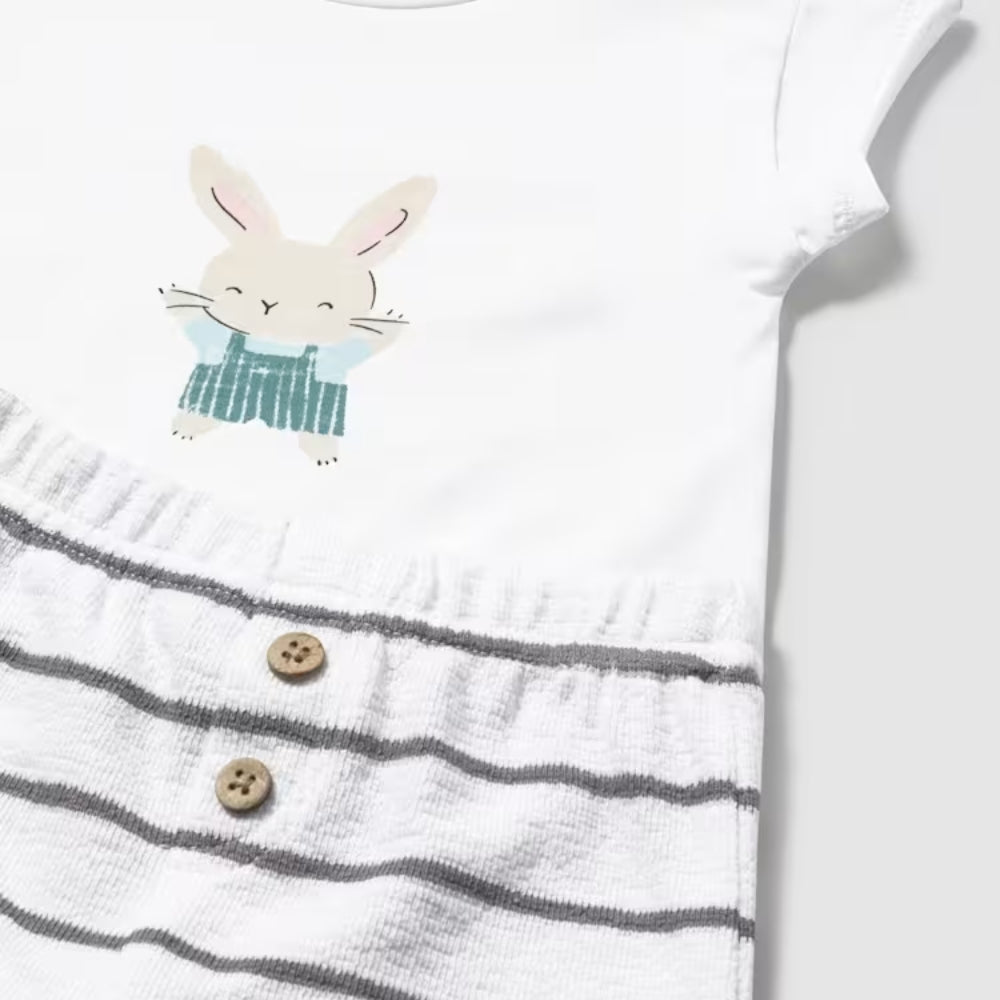 Mäkká bavlna s prídavkom elastanu je príjemná na pokožku a jednoduché strihy uľahčujú rýchle prezliekanie.