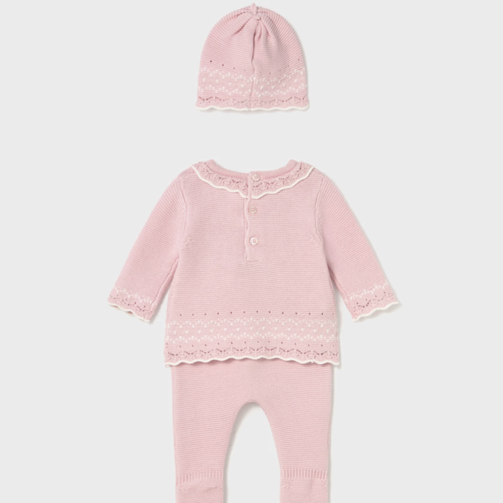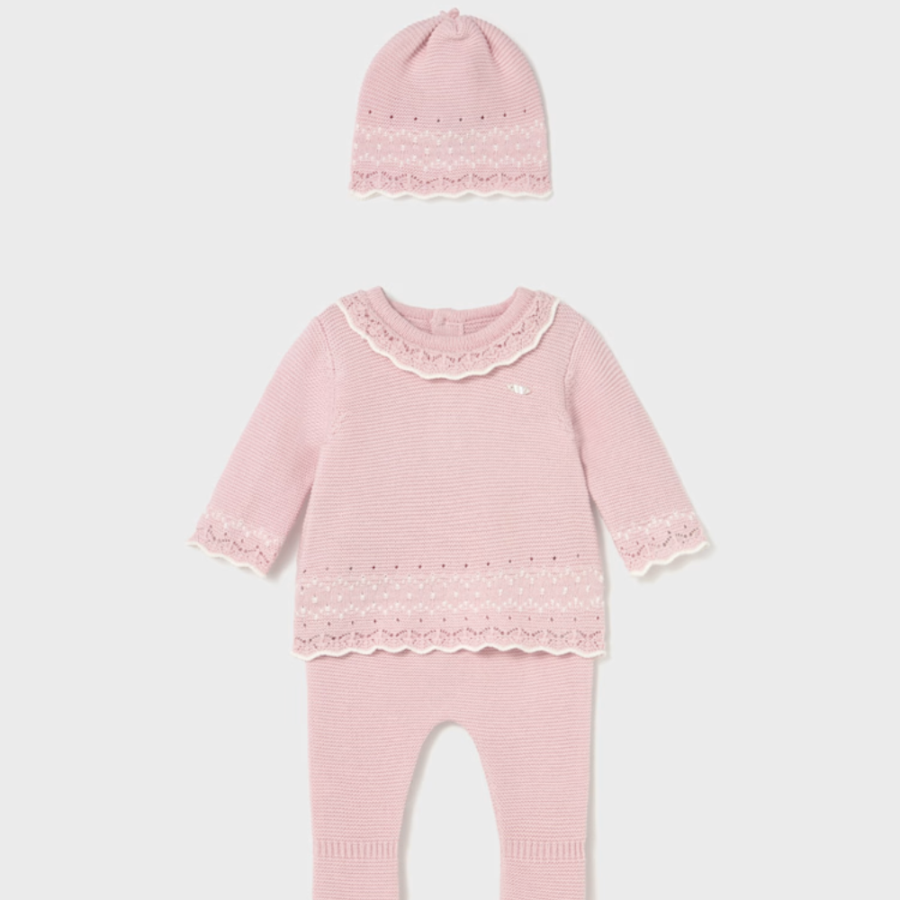 Novorodenecká súprava Mayoral je mäkká trojdielna súprava určená pre prvé mesiace života vášho dieťatka.