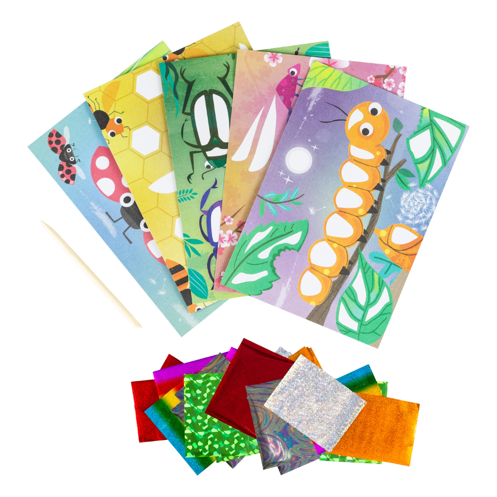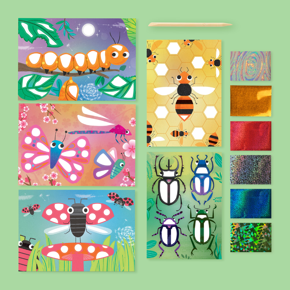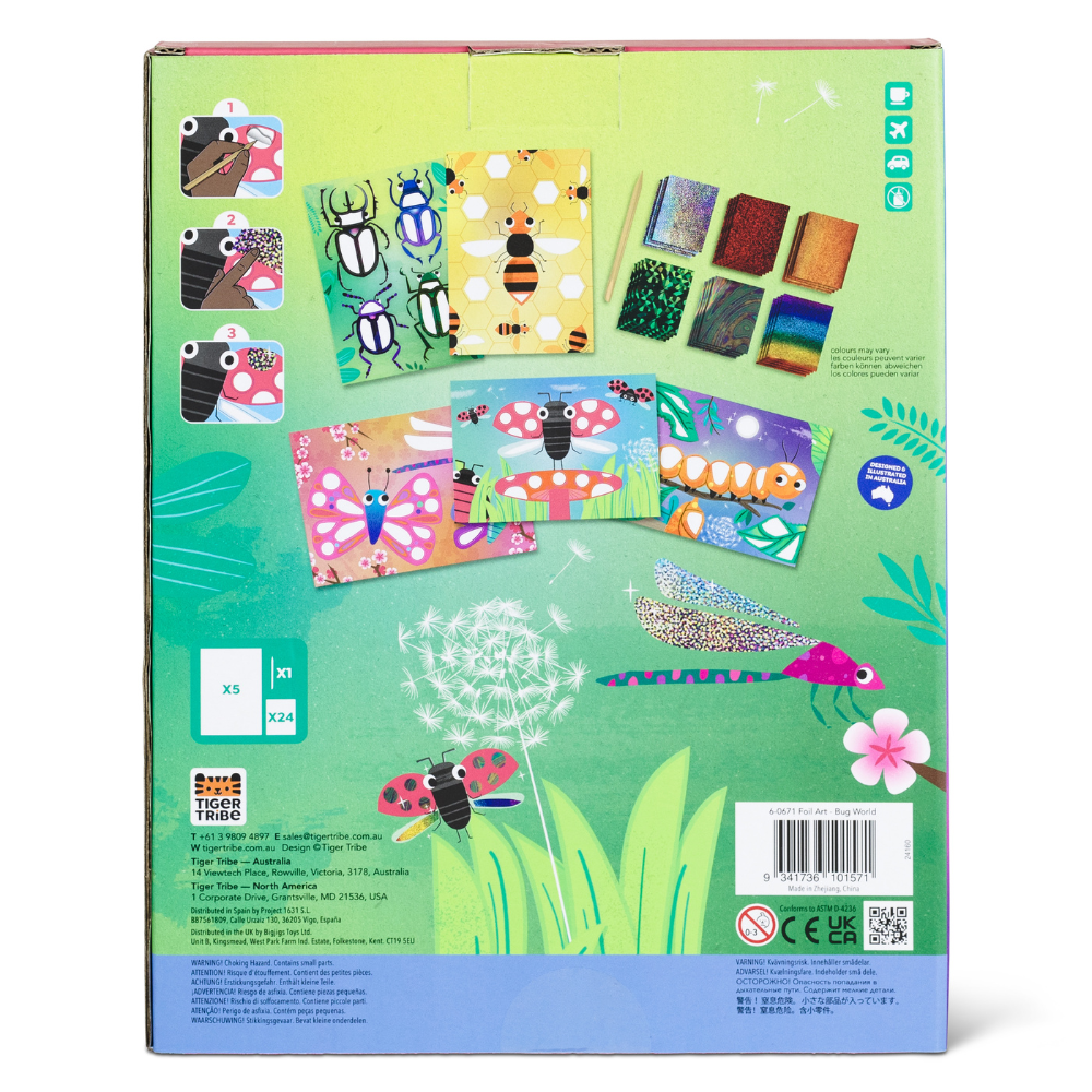 Výtvarná súprava Tiger Tribe s fóliou - Radostní chrobáci je kreatívna hračka, ktorá deti vtiahne do rozprávkového žiarivého sveta chrobákov, včiel a berušiek. Stačí vybrať ilustráciu, odlepiť biele rámčeky a priložiť holografickú fóliu a obrázok okamžite ožije - je ideálny na hrdé zavesenie na stenu v detskej izbe.