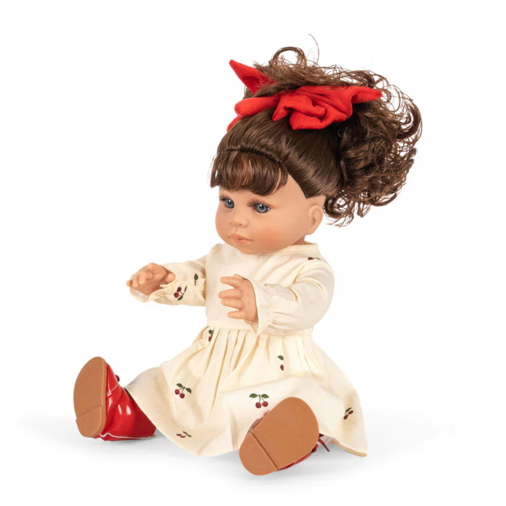 Oblečená do šiat so sladkým čerešňovým vzorom a vybavená dlhými vlasmi nabáda k vytváraniu vlastných príbehov a každodenných rituálov starostlivosti.