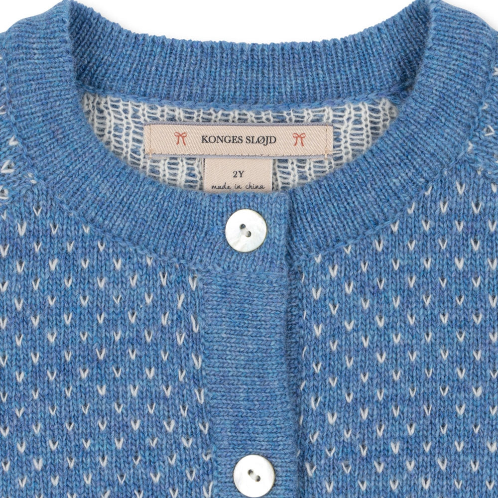 Jemné perleťové gombíky dodávajú jedinečný šarm a mäkkosť charakteristickú pre výrobky Konges Slojd.