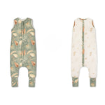 Roztomilý obojstranný spací vak Sleepee bohemian green, bohemian botanic footed.