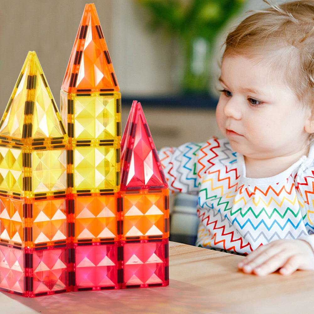 Hra s magnetickými blokmi rozvíja kreativitu a každý nový projekt je pre dieťa zdrojom radosti a hrdosti.