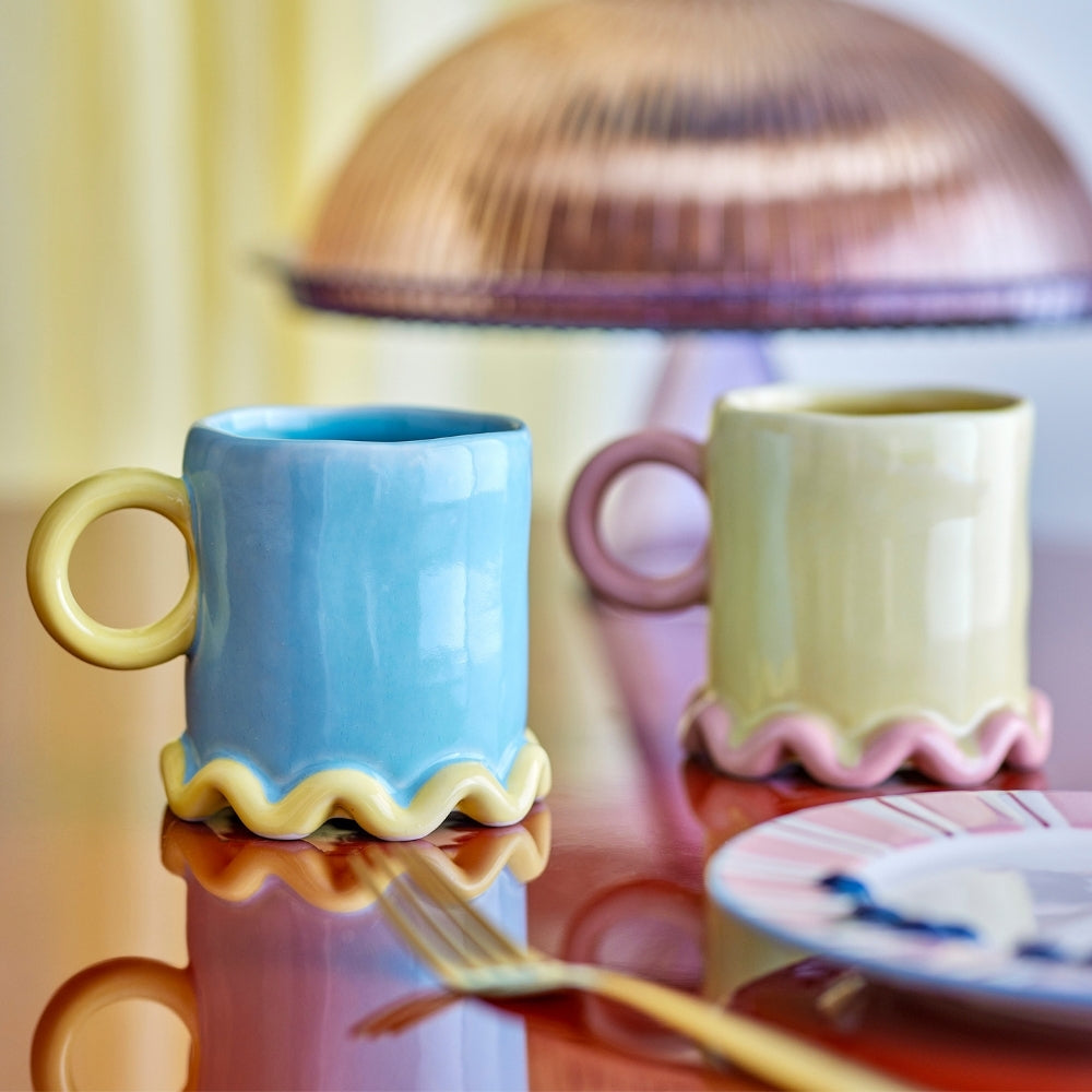 Kameninové hrnčeky Bloomingville z kolekcie Polly sú štýlovou súpravou, ktorá do každodenných chvíľ pri káve alebo čaji vnesie nádych farieb a remeselného spracovania.