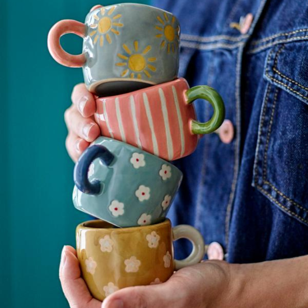Sada Nini sú hrnčeky od spoločnosti Bloomingville, ktoré okamžite dodajú stolu veselý nádych a aj obyčajný čaj bude vyzerať slávnostnejšie. Každý kus má ručne maľovaný dizajn v rôznych farbách, vďaka čomu hrnčeky pôsobia ľahko, hravo a veľmi "domácky" - ideálne na rodinné raňajky alebo popoludňajší čaj.