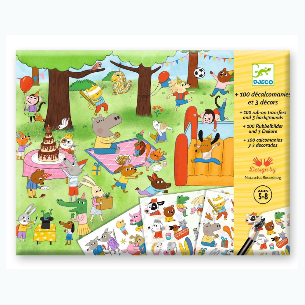 Táto sada obtlačkov od spoločnosti Djeco prenesie vaše dieťa do farebného sveta narodenín, karnevalov a festivalov - plného zábavných postavičiek a scén, ktoré možno vytvárať znova a znova.