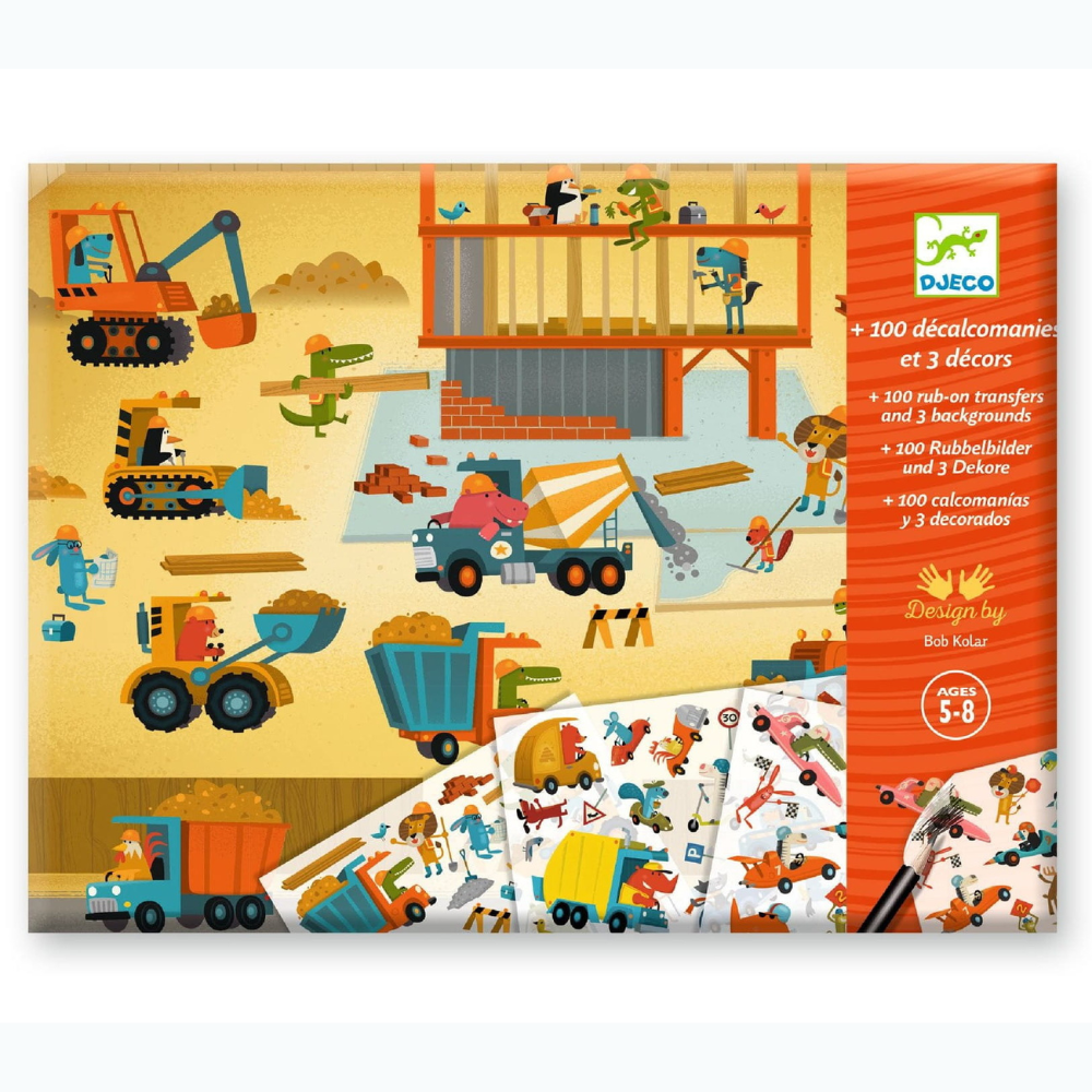 Sada obtlačkov Djeco zavedie deti na stavenisko, do ulíc mesta a na pretekársku dráhu.