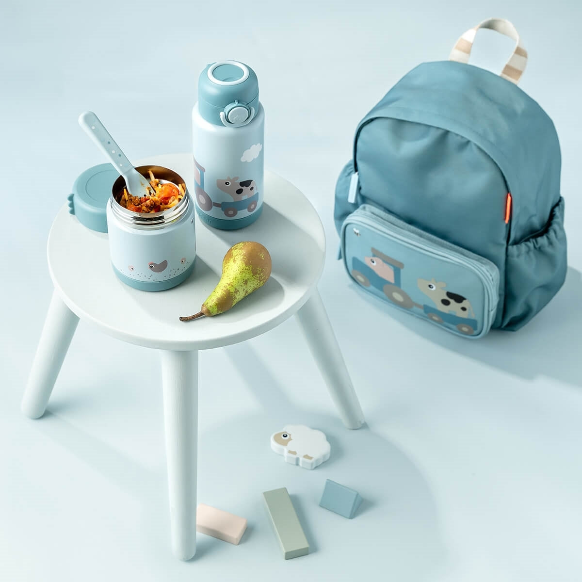 Done by Deer Detská termoska na obed 300 ml Tiny Farm Blue