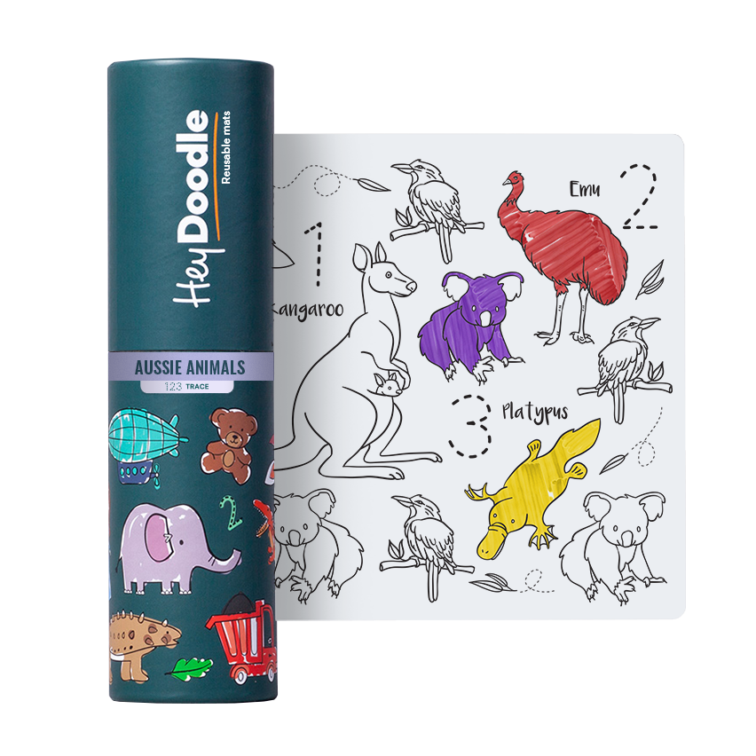 Silikónový povrch veľkosti A4 obsahuje austrálske zvieratá a čísla na obkresľovanie, vďaka čomu sa učenie počítania a prvých čísel stane zábavou. Farebné ilustrácie sa dajú kedykoľvek zotrieť vlhkou handričkou alebo opláchnuť pod vodou a potom znovu použiť.
