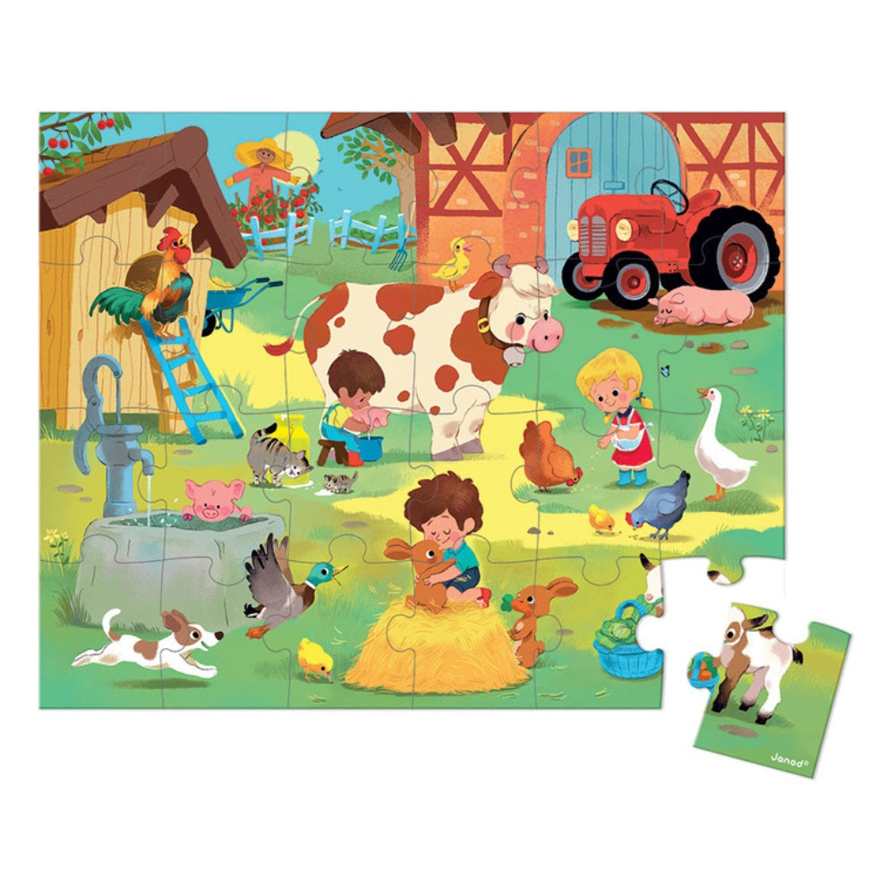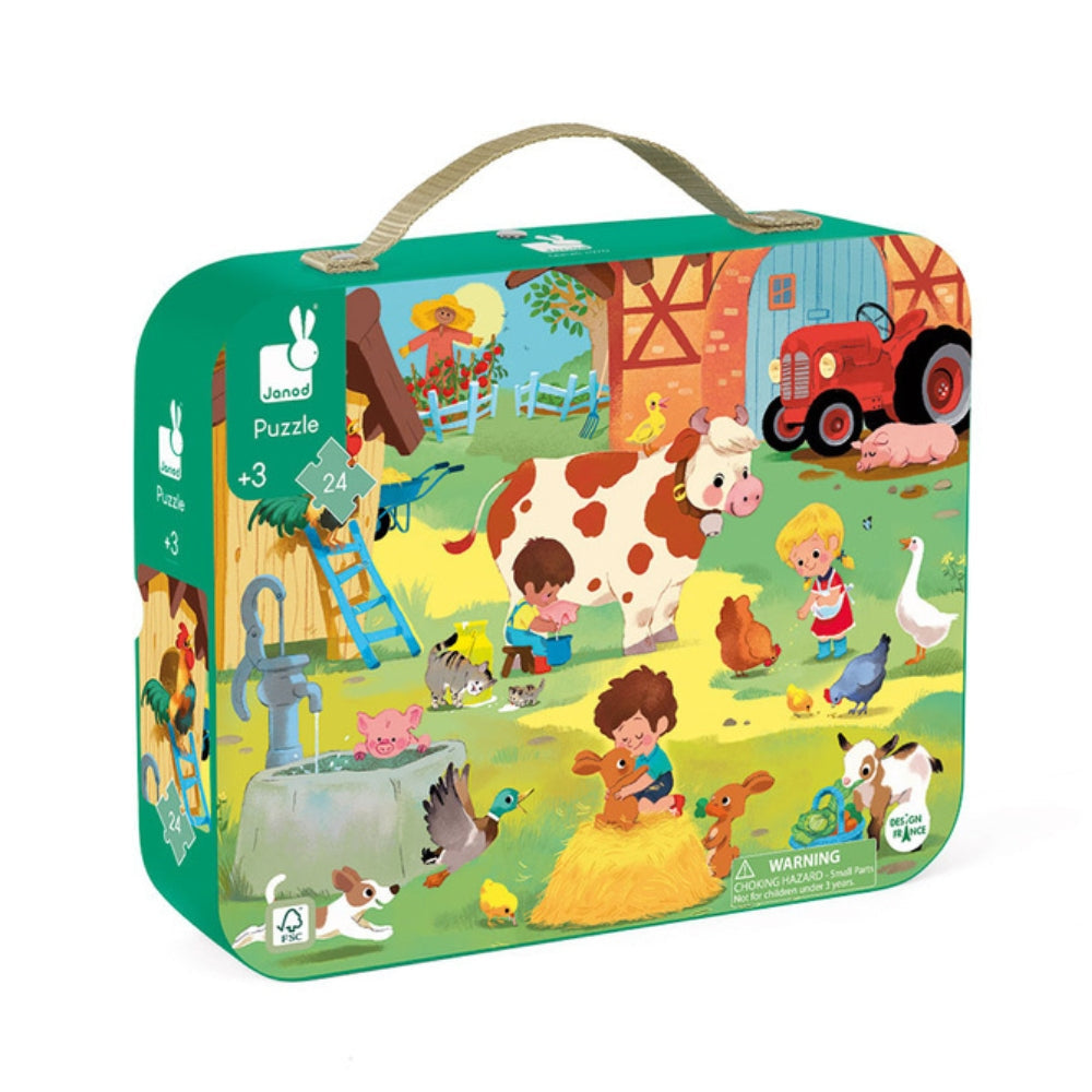 Janod Puzzle v kufríku Deň na farme 24 dielikov
