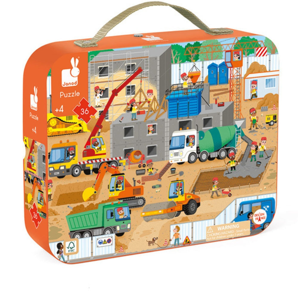 Janod Puzzle v kufríku Stavenisko 36 dielikov