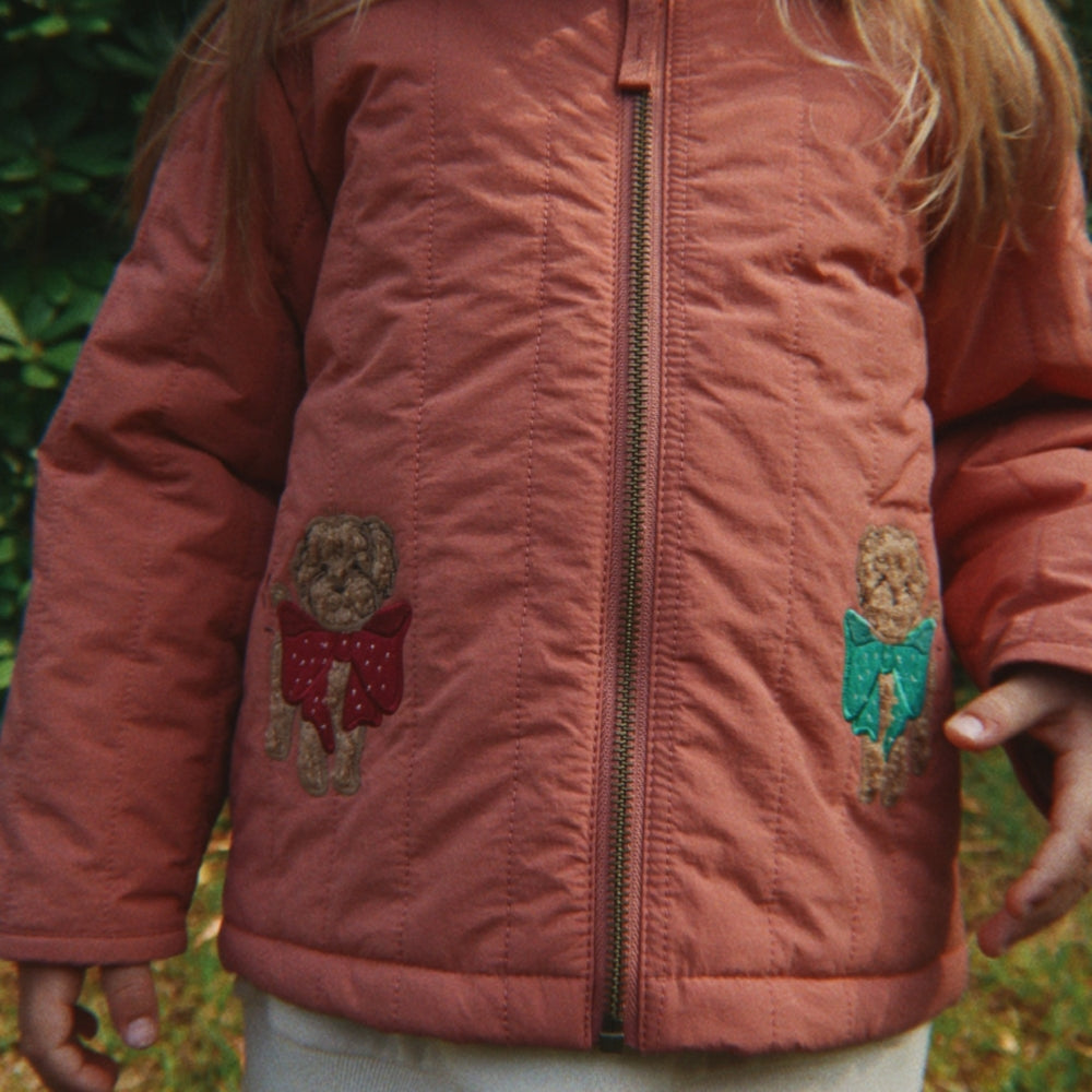 Dievčenská bunda Konges Slojd má mäkkú polyesterovú izoláciu, ktorá účinne izoluje proti chladu a zároveň umožňuje pokožke dýchať.