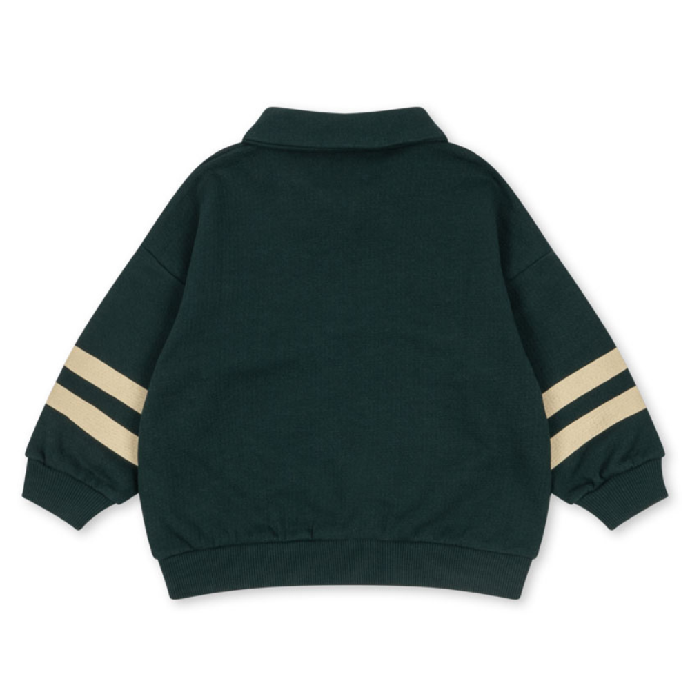 Mikina od Konges Slojd v klasickom strihu s polovičným zipsom je pohodlná a mäkká voľba na každý deň - ideálna do škôlky, školy a na víkendové výlety. Kontrastné prúžky na rukávoch dodávajú športový nádych, zatiaľ čo zips uľahčuje rýchle obliekanie a reguláciu tepla.