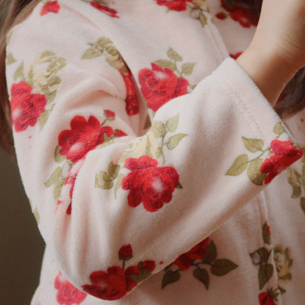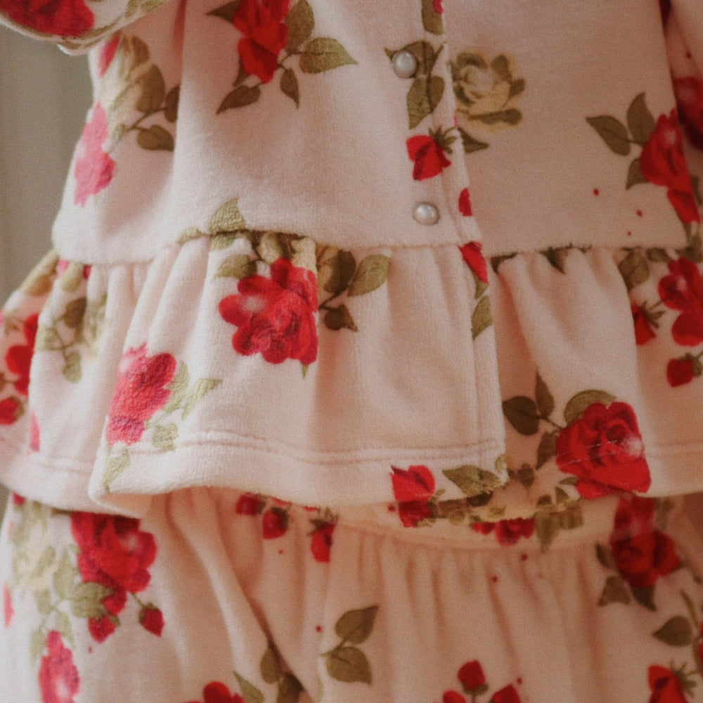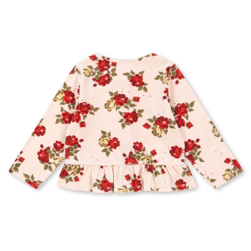 Dievčenský sveter Konges Slojd je mäkký sveter na dotyk s velúrom, s roztomilou légou a zapína sa vpredu na praktické patentky.