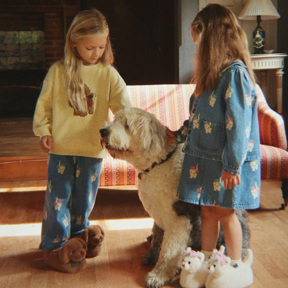 Džínsová bunda pre dievčatá v kombinácii s nohavicami Magot vytvára roztomilý, ucelený komplet, ktorý poteší malú módnu nadšenkyňu aj rodičov, ktorí si cenia štýl a pohodlie.