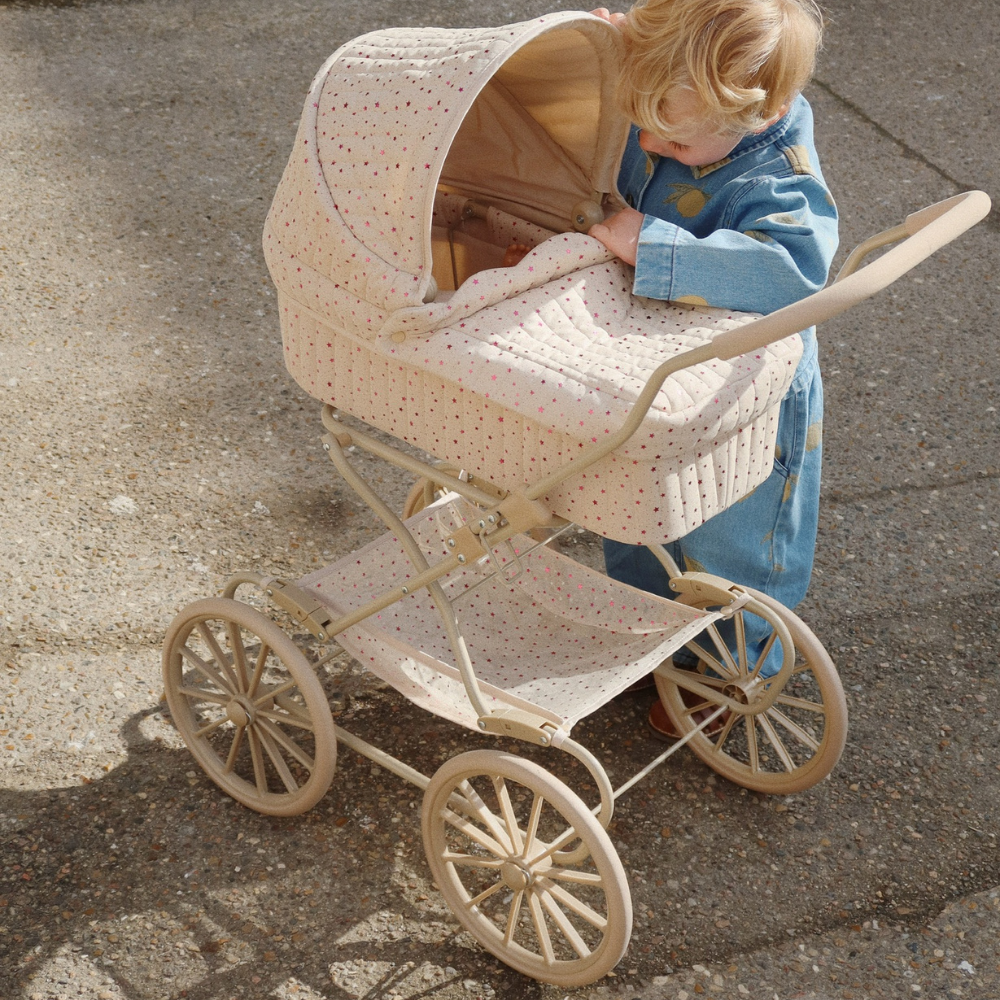 Vozík pre bábiky Konges Slojd vo vintage štýle je krásny a veľmi robustný doplnok na hranie pre deti, ktorý umožní vášmu dieťatku starať sa o svoje milované bábiky rovnako ako skutočný vozík.