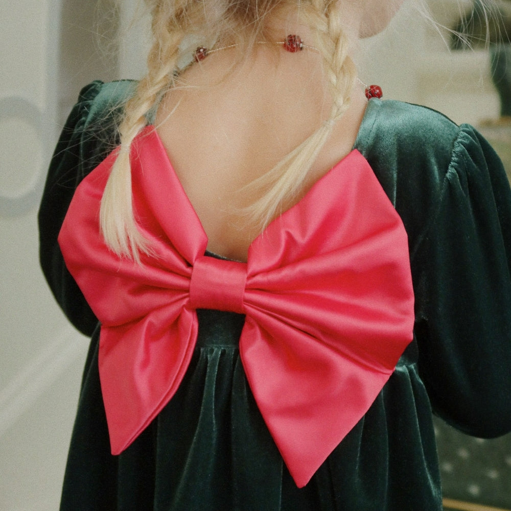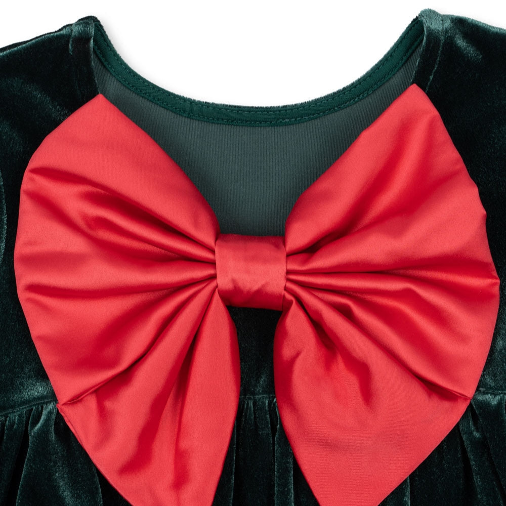 Konges Slojd Girls Velvet Dress Gia Bow Pine Grove