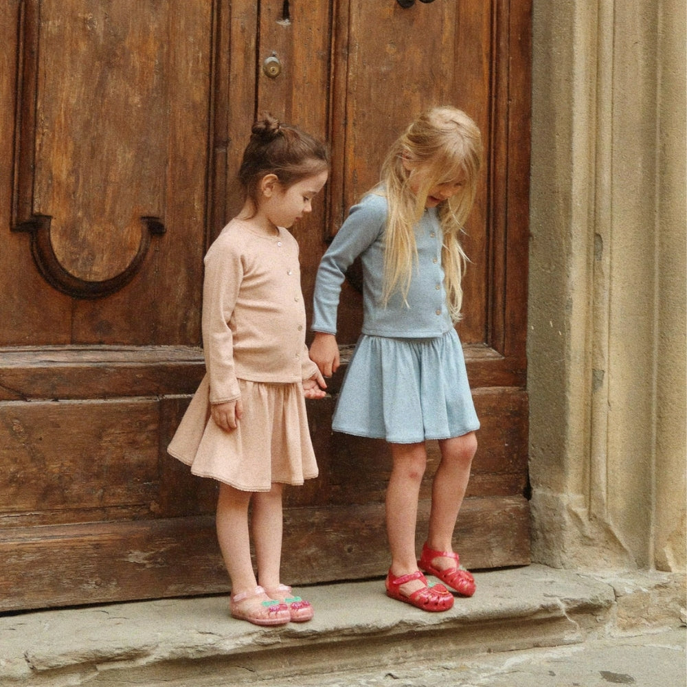 Dievčenská sukňa Konges Slojd je jedinečný kúsok oblečenia, ktorý spája pohodlie s jemným detským šarmom.