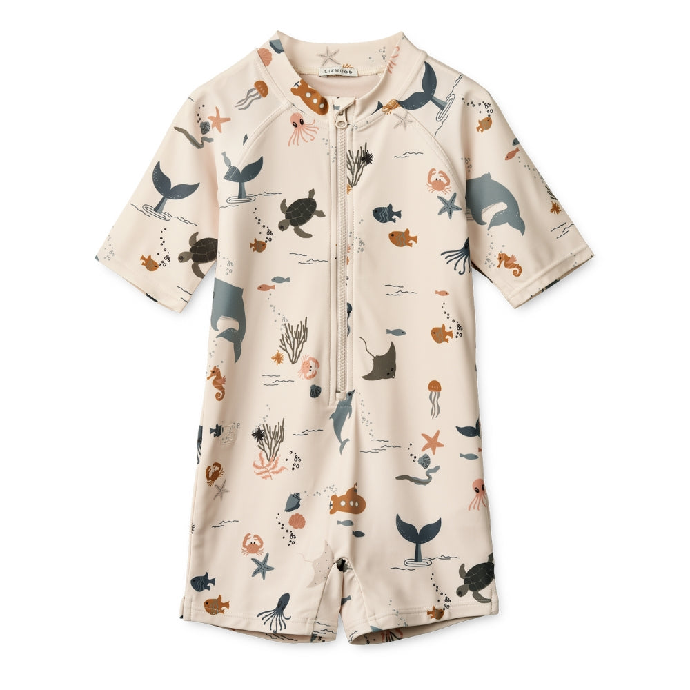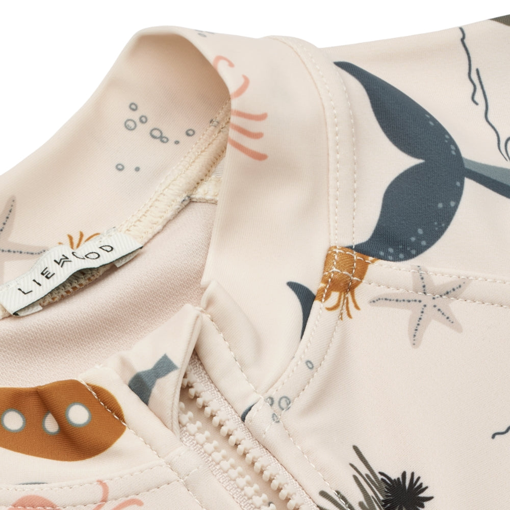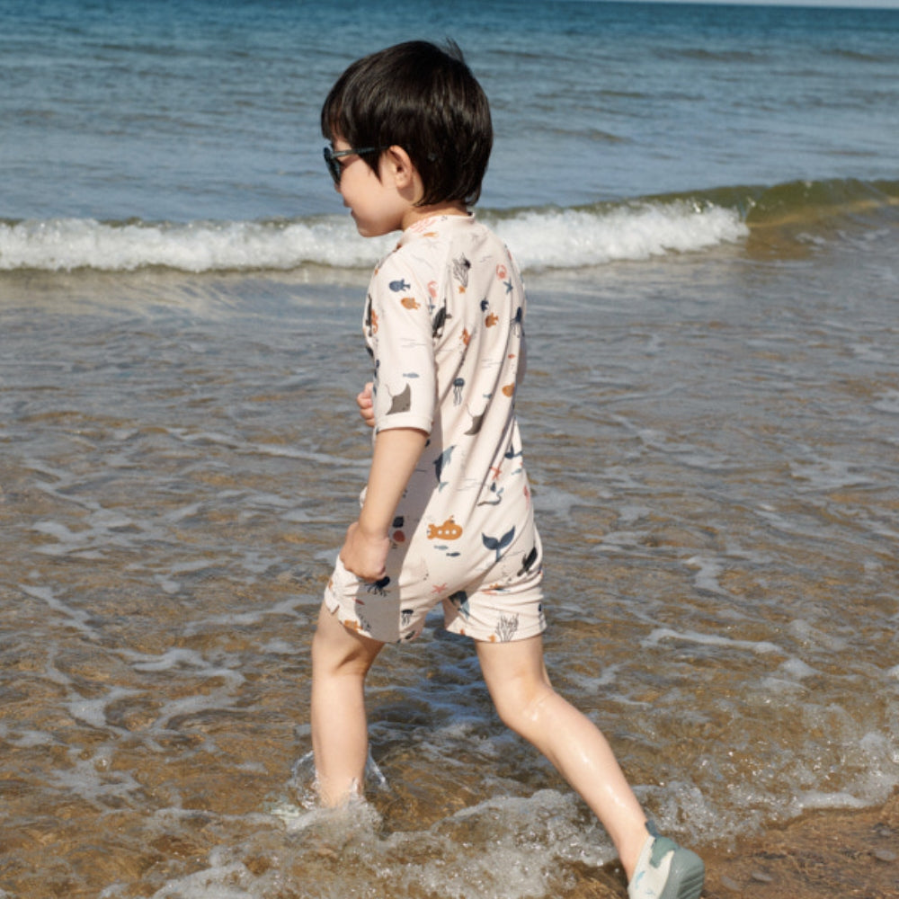 Liewood chlapčenské jednodielne plavky s krátkym rukávom Max Sea creature / Sandy