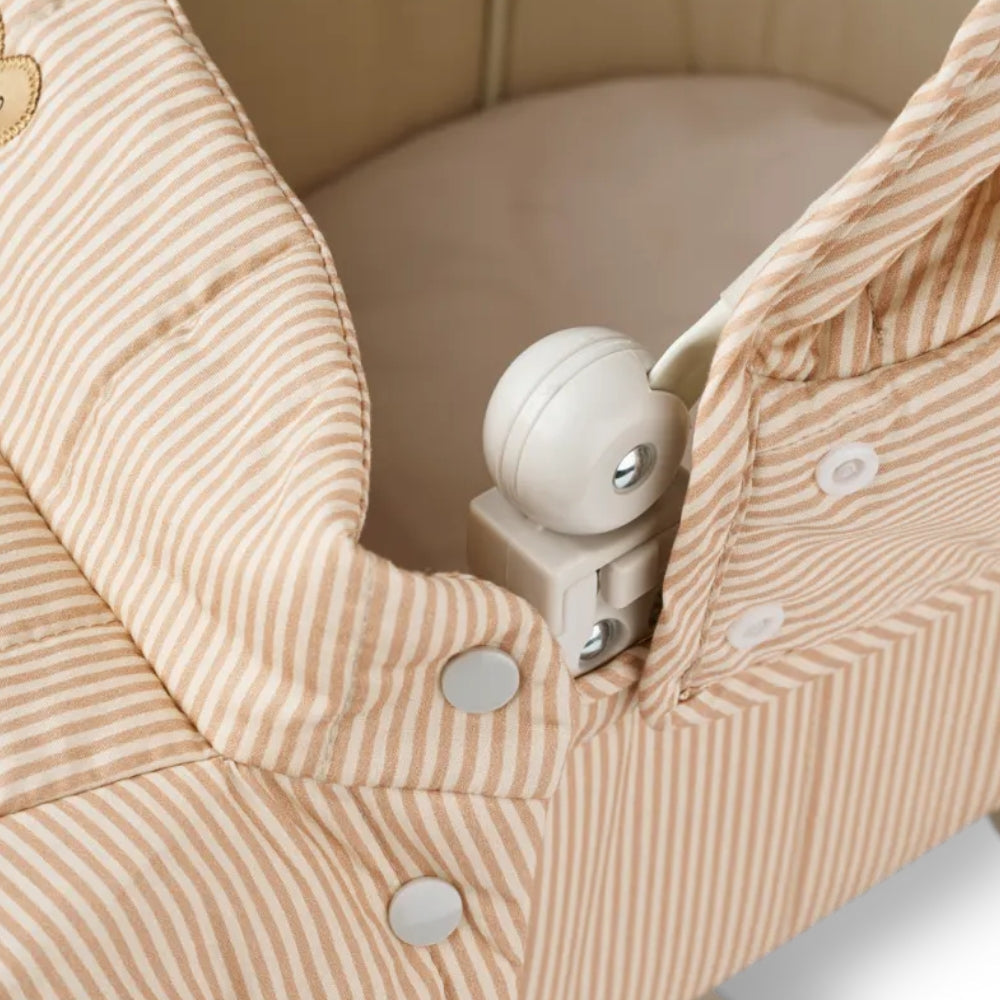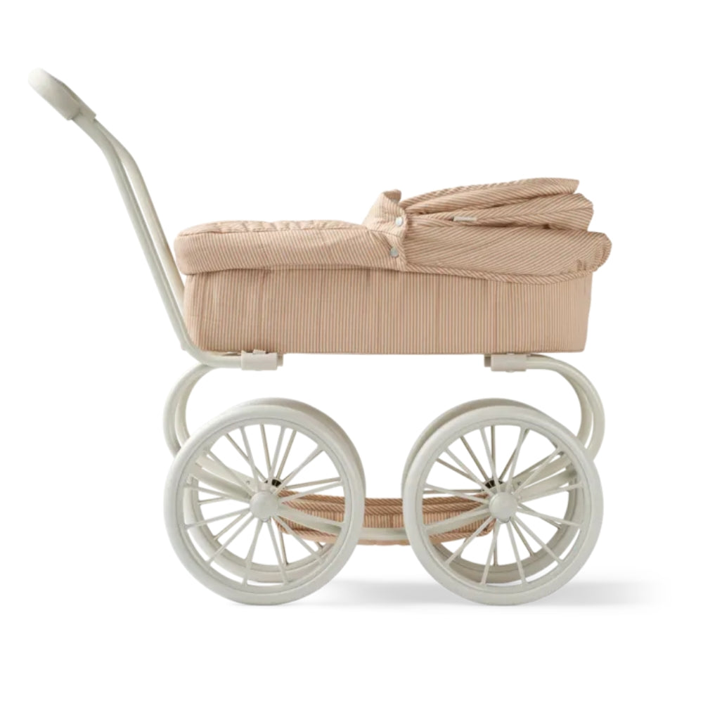Kočík pre bábiky Adaline Berry Pale Tuscany od spoločnosti Liewood so štyrmi veľkými kolesami a prenosnou vaničkou.