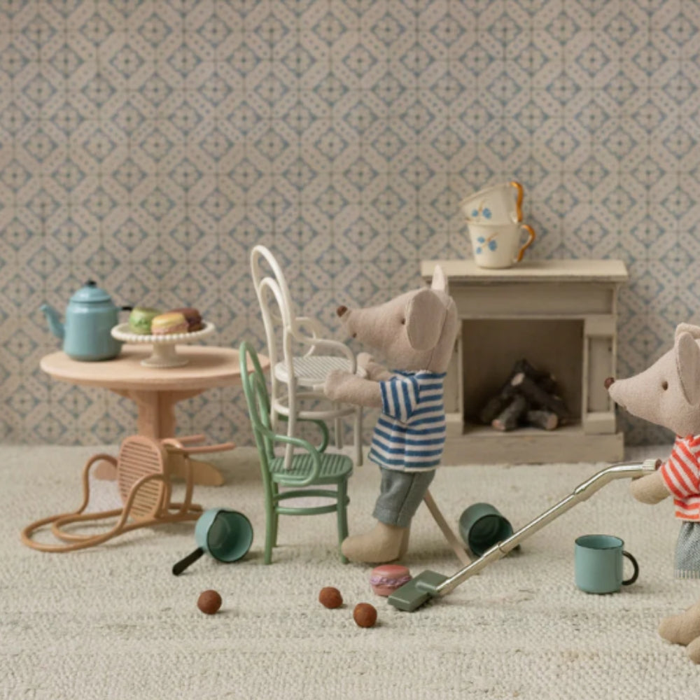 Miniatúrna stolička od spoločnosti Maileg je rozkošným doplnkom, ktorý sa dokonale hodí k malým myšiam z kolekcií Little Sister/Brother a Big Sister/Brother.