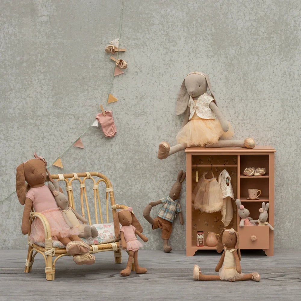 Je ideálnym miestom na oblečenie pre zajačika, plyšových medvedíkov alebo na najcennejšie poklady vášho dieťaťa. Vďaka svojej veľkosti je miniatúrna skriňa Maileg ideálna do detskej izby, pričom je príliš veľká na to, aby sa zmestila do domčekov pre bábiky tejto značky.