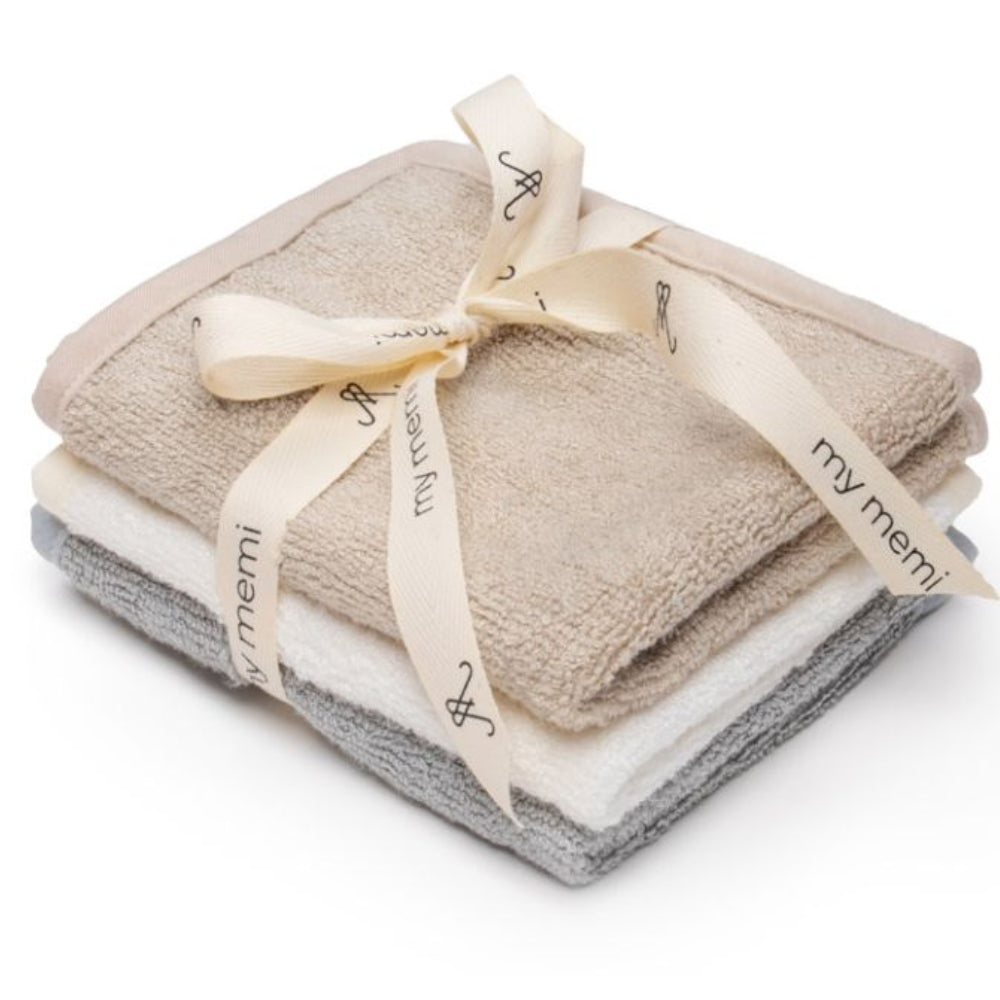 Súprava troch funkčných bambusových uterákov v krémovej/svetlosivej/béžovej farbe od značky Memi je produkt, ktorý sa bude hodiť každému rodičovi.