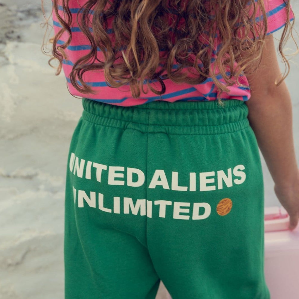 Detské nohavice majú na prednej strane ozdobnú textovú potlač a na zadnej strane veľkú potlač, ktorá zdôrazňuje osobitý štýl Mini Rodini.