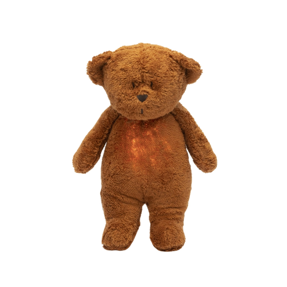 Organický medvedík 2.0 značky Moonie s karamelovým svetlom.
