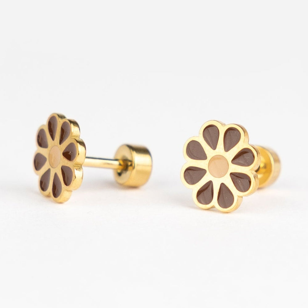 Vďaka špeciálnemu skrutkovaciemu systému zostávajú detské náušnice pani Erthy pohodlné po celý deň - možno ich nosiť aj počas spánku bez obáv z nepohodlia.