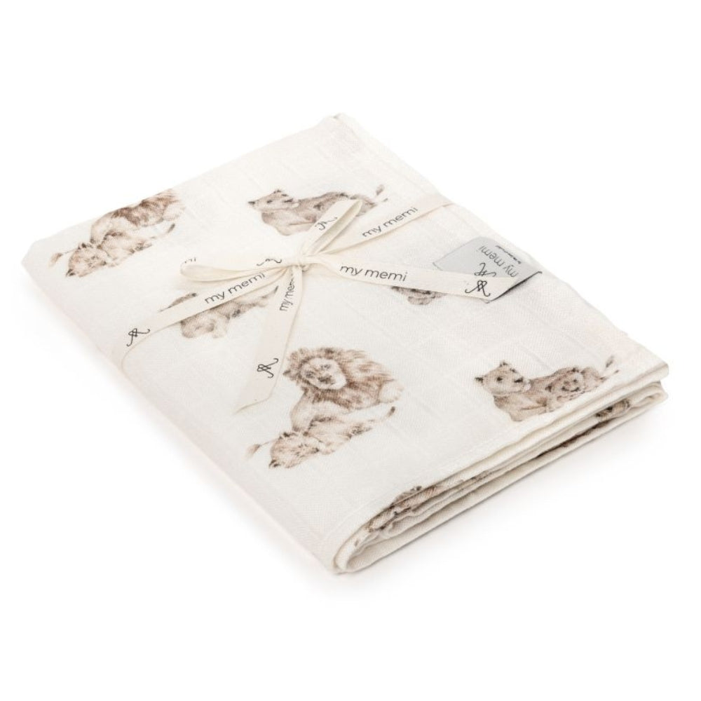 Jemné vzory kolekcie Lions navrhla spoločnosť My Memi s dôrazom na detail, vďaka čomu je mušelínová zavinovačka praktická aj štýlová.