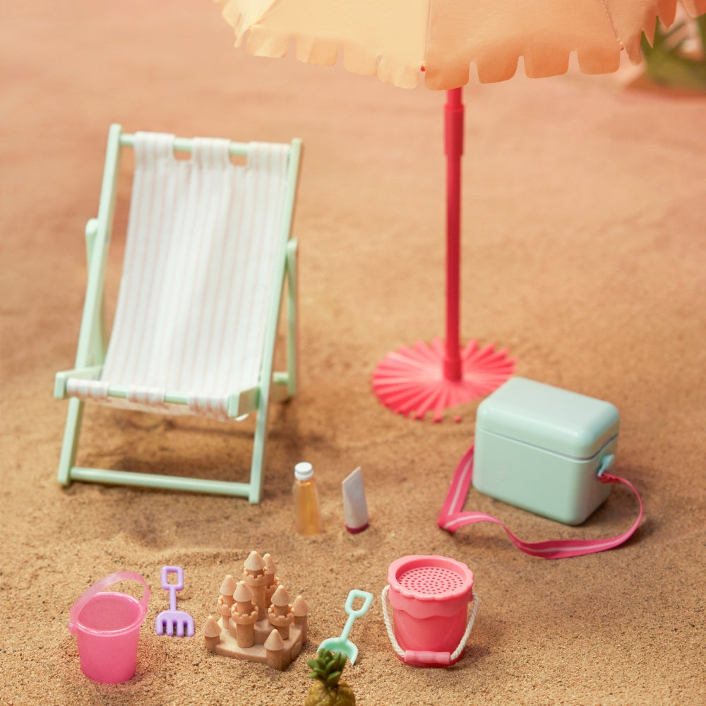 Táto rozkošná súprava doplnkov umožní vašej bábike užívať si slnko, oddych a osviežujúce občerstvenie - presne ako na skutočnej dovolenke!