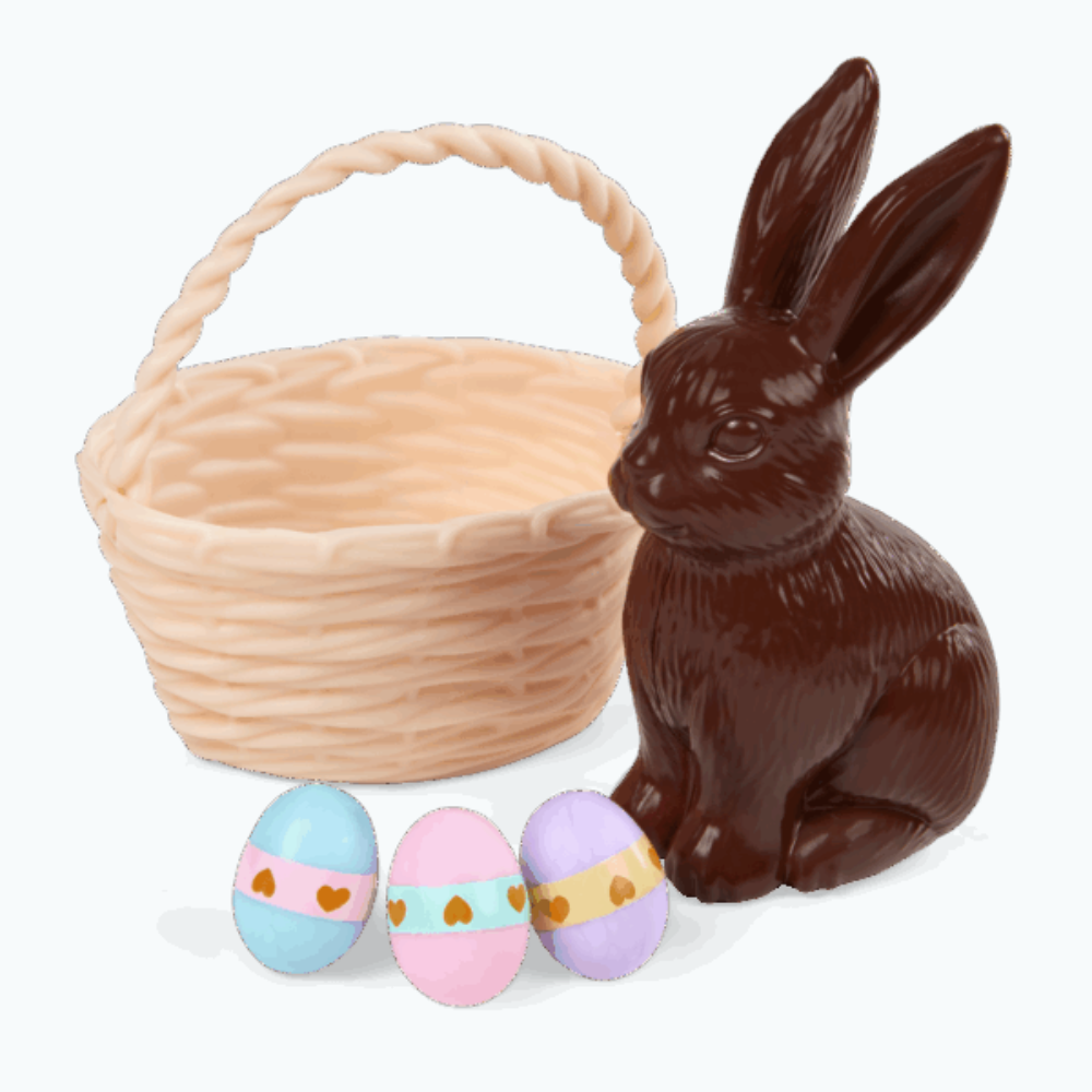 Okrem toho veľkonočný košík s 3 sladkými vajíčkami a "čokoládovým" zajačikom priam prosí, aby ste sa s ním hrali a našli sladkosti.