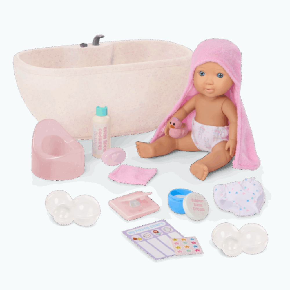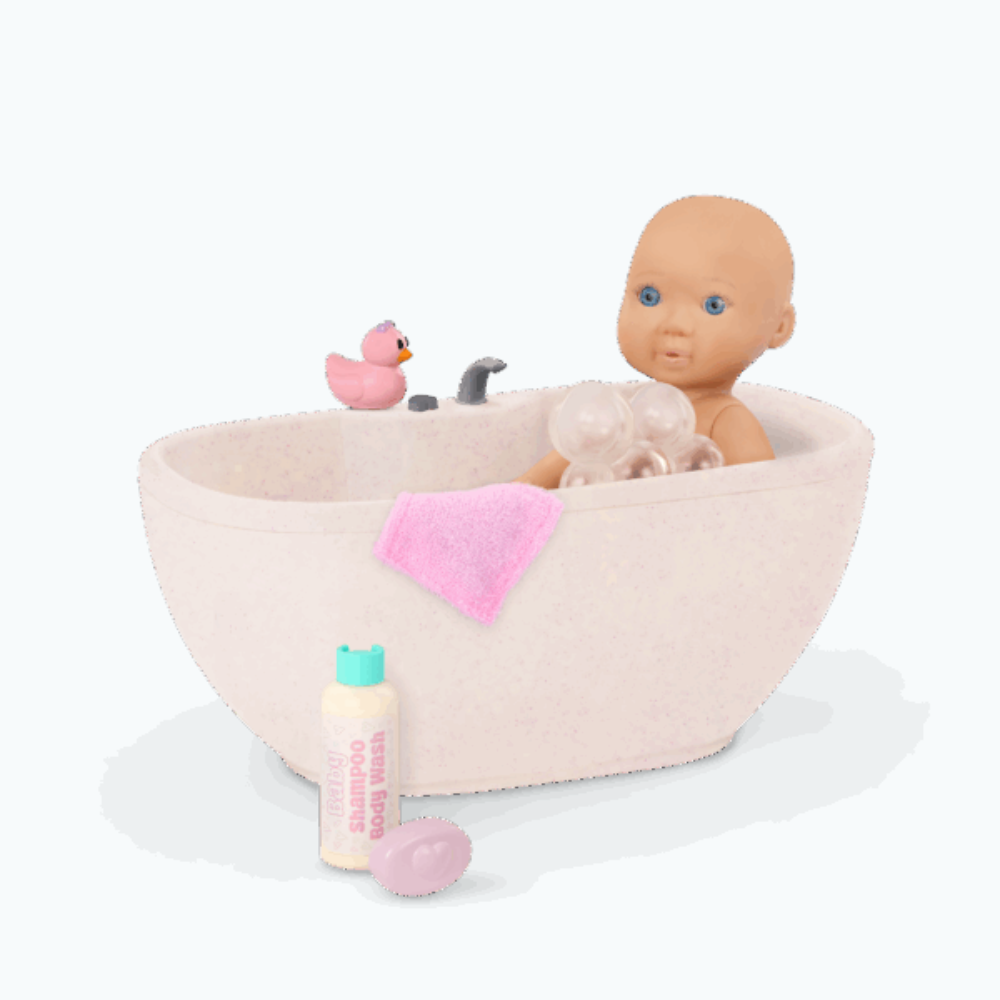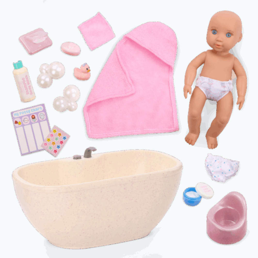 Súprava do kúpeľa pre bábiku Lacy od spoločnosti Our Generation obsahuje bábiku s vaničkou, ktorá deti vtiahne do teplého domáceho rituálu dojčenia.