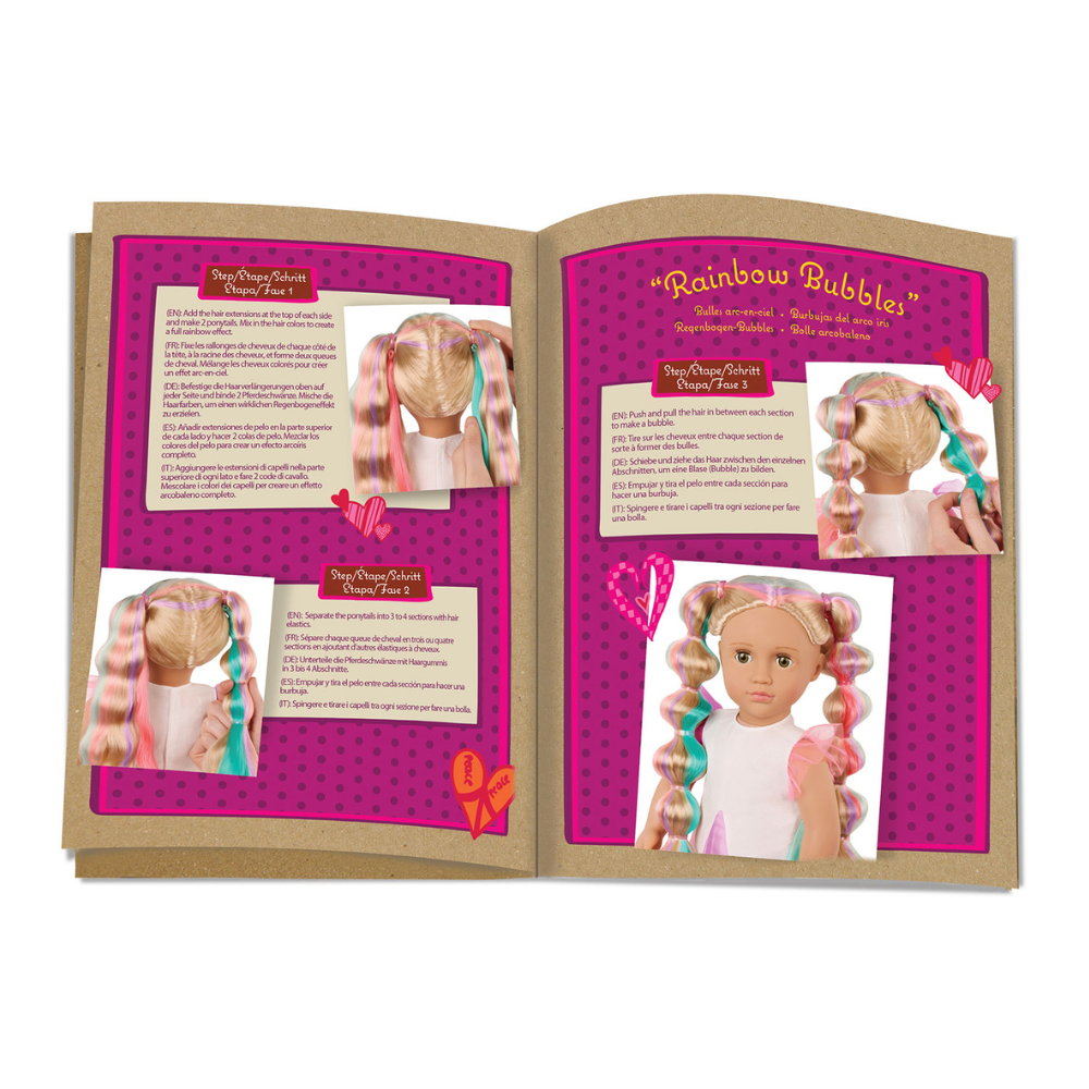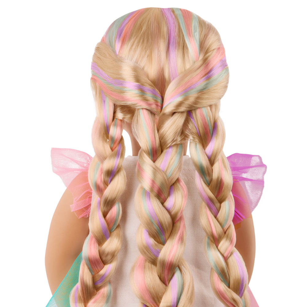 Táto bábika je vysoká až 46 cm, má mäkký trup a dlhé, nastaviteľné blond vlasy s farebnými melírmi, ktoré sa dajú pripnúť a upraviť na mnoho spôsobov.