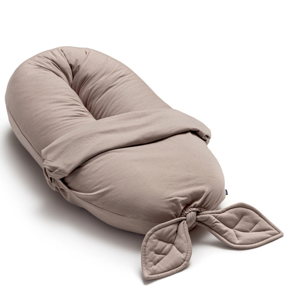 Súprava sa dodáva s dodatočným prekrytím, vďaka ktorému sa vankúš ľahko zmení na bezpečné ležadlo pre dieťa a tehotenský vankúš získa ďalšie praktické využitie.